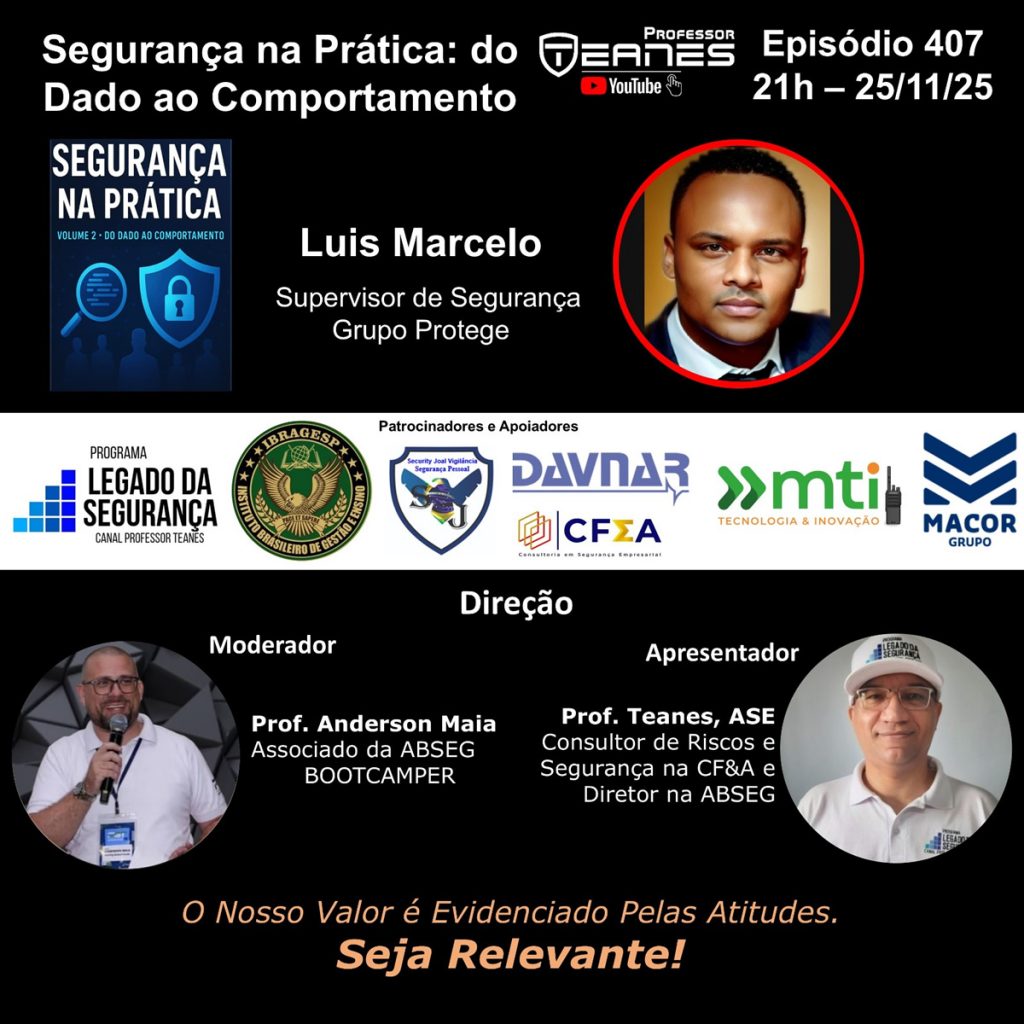 Resumo: O episódio abordará os principais conceitos do livro “Segurança na prática: do dado ao comportamento”, mostrando como a coleta e análise de informações podem transformar a atuação em segurança privada. Serão discutidas estratégias para converter dados em decisões eficazes, promovendo comportamentos preventivos e aumentando a eficiência operacional. Também serão apresentados exemplos práticos de aplicação em ambientes corporativos, com foco em resultados concretos e mensuráveis. Ao final, os participantes compreenderão como alinhar tecnologia, processos e atitudes para uma segurança mais inteligente e eficaz