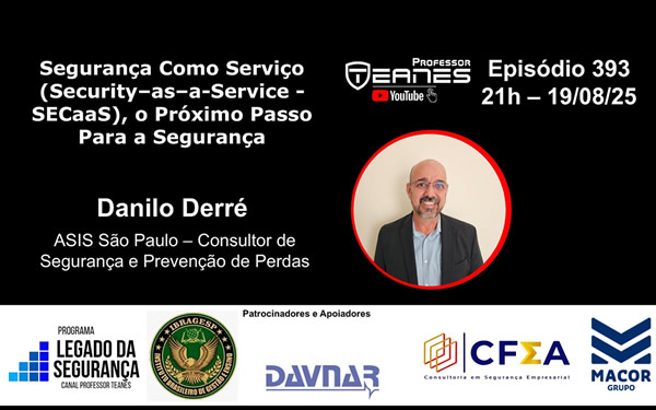 Segurança como Serviço Security-as-a-service-SECaaS o próximo passo para segurança com Danilo Derre ASIS São Paulo Canal Professor teanes Youtube Episodio 393 cosial media
