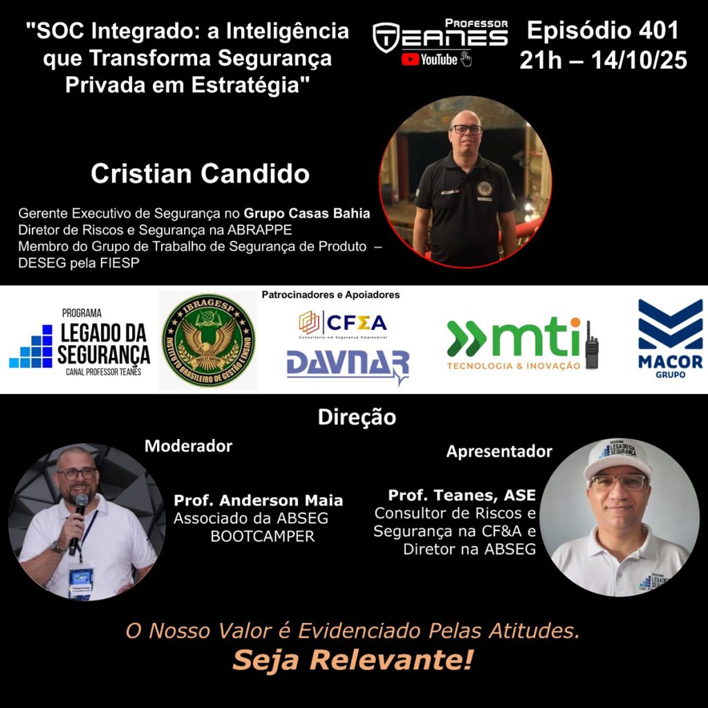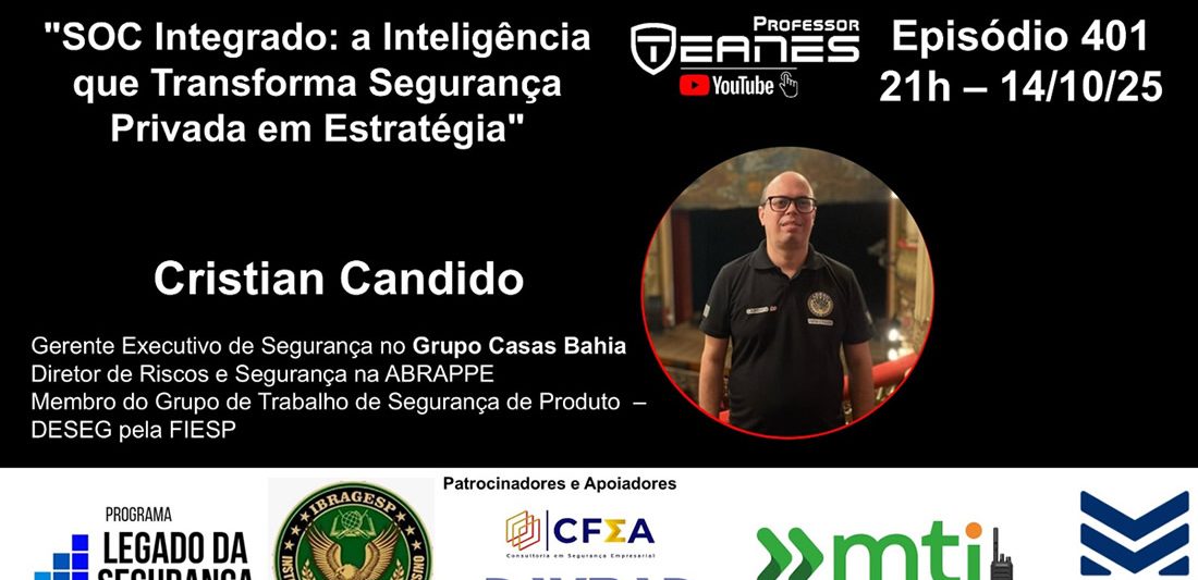 Tema: SOC Integrado: a Inteligência que Transforma Segurança Privada em Estratégia, com Cristian Candido