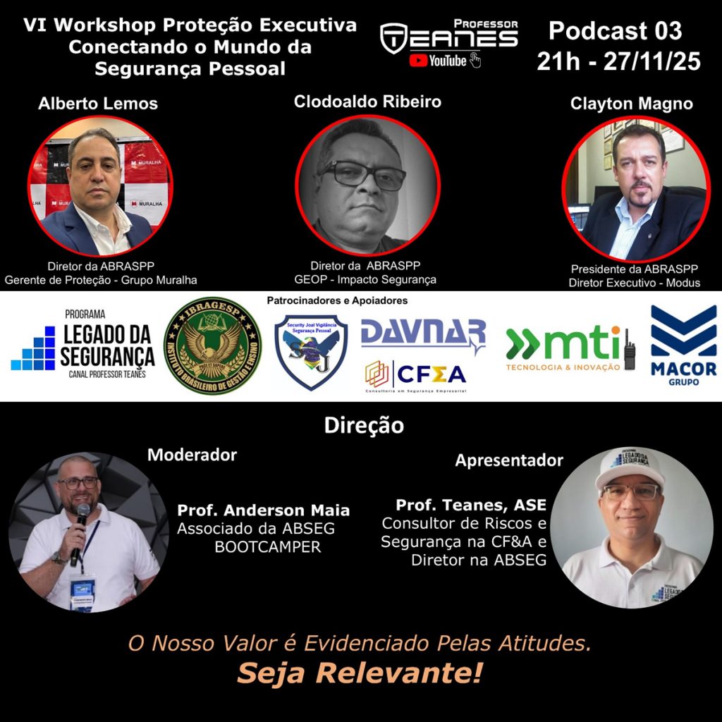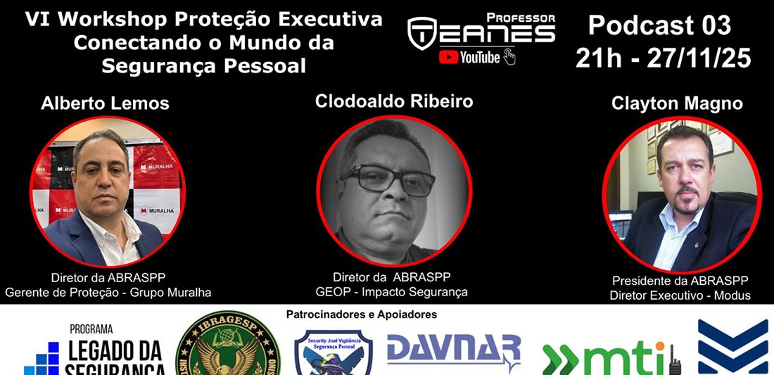 VI Workshop Proteção Executiva Conectando o Mundo da Segurança Pessoal, com Clayton Magno, Clodoaldo Ribeiro e Alberto Lemos